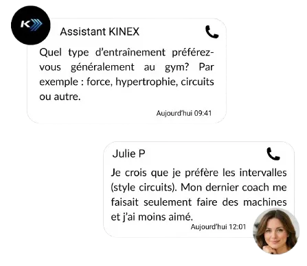 Avec KINEX, vous avez un système de suivi qui vous aide à rester engagé dans votre parcours.